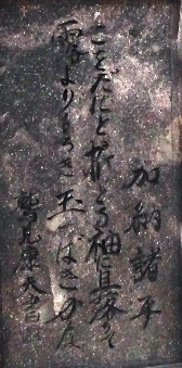 せめてこれ一つだけでもと折りとる、その端から袖におちてしまう。 ほんとうに露よりもろい椿であるよ。 出典:『柿園詠草』より ※作者の加納諸平が正覚院に墓参(父の夏目甕麿)に来た時、墓前に供する花がなかったので、そこに咲いていた玉つばきを折りとったら、はらりと散りこばれたという歌。 |
