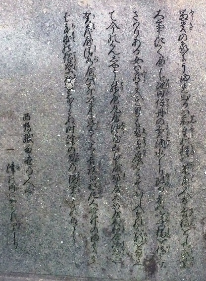 富貴の家にうまれ出るは、前世の種成。兎角人は善根をして、家業大事にかくべし。池田・伊丹の売酒、水より改め、米の吟味、麹を惜まず、さはりある女は蔵に入ず、男も替草履履はきて出し入れすれば、軒をならべて、今のはんじゃう、舛屋・丸屋・油屋・山本屋・酢屋・大部屋・大和屋・満願寺や・加茂屋・清水屋・此外次第に栄て、上ゝ吉諸白松尾大明神のまもり給へば、千本の椙葉枝をならさぬ、時津の国乃隠里かくれなし。 『西鶴織留世乃人心』 一、津の国のかくれ里より |