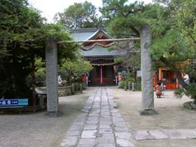 醍醐天皇の901年(昌泰4)、道真が大宰府へ向かう途中、当景勝地に立ち寄り臂を枕に休息されたので、以後、この岡を臂岡と呼ぶようになったといいます。このとき、橘姓、大路姓の村人が公に粗茶を献上したといわれています。公はこの地を去るとき、「吾れ赦免となって生あらば此地繁昌の霊地となすべし」との誓いを立てて大宰府へ下りましたが、許されることなく、903年(延喜3)2月25日に59歳で筑紫太宰府の「府の南館(榎寺跡)」にて亡くなりました。没後90年を経た993年(正暦4)になって赦免され、正一位太政大臣の官位が贈られました。そのことを公の霊前に報告のため、筑紫に下った勅使が帰京の途中、生前、公が聖地繁昌を誓われたことに因み、この地に社を建て、公の肖像を納めたのが当宮の起こりとされています。