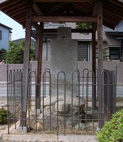 1763年(宝暦13)秋の大風で壊れた祠を、1784年(天明4)に復旧した折り、その事情を残すため祠碑が造られました。花崗岩製の亀趺(きふ)(亀型台石)の上に「布貨(ふか)」(中国古代の貨幣)を型取った砂岩製の珍しい碑身が立っています。碑文の書は、山中家が経済的に支援し、その発展に尽くした懐徳堂の教授・中井履軒の手になるものです。造られたのは1800年(寛政12)頃と推定されています。
