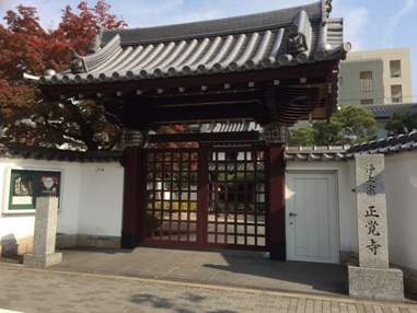 浄土宗、願成山正覚寺は知恩院末寺です。1469年(文明元)の創建で開基は馨譽(きょうよ)上人です。本堂は『有岡庄年代秘記』によると、1707年(宝永4)建立とあり、1856年(安政3)に大改修が行われ、近年まで護持されましたが、2004年(平成16)に西側の産業道路拡張工事に伴い本堂・庫裏等が建て替えられました。