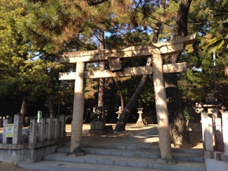 南野神社は市バス「南野」停留所を西に進みますと了福寺に隣接する地に鎮座しています。境内には松が多く、社殿の後にクスノキの大木が目立ちます。木造の社殿の中に柿葺流造の本殿が祀ってあります。