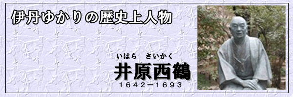 大坂生まれ。江戸時代前期の代表的な浮世草子作家。談林派の俳人でもありました。『好色一代男』『好色一代女』『日本永代蔵』『世間胸算用』『西鶴織留』など数々の名作を書き残しています。