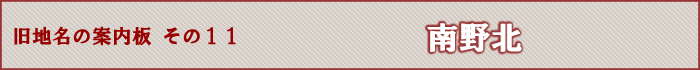 山陽新幹線より北側区域の南野の旧地名のうち「池ノ下」「溝口」は、現在の市営山道団地のところに「南野村池」があったことと、その用水に関係がある地名と思われます。また、「山道」は南野村を通っていた有馬道(古くより有馬温泉に向かう道)と関係があると思われます。