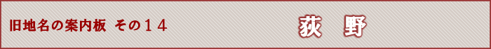 荻野の名の由来は、むかしオギが茂っていたから″とか、扇を広げたような地形だから″とかいわれますが、はっきりしません。荻野村・鴻池村は寛永12年(1635)に荒牧村から分かれて独立しました。松ケ本・鶴田・福島など、となりの村と同じ地名があるのは、そのなごりでしょう。現在北野に含まれる地域には、第二次大戦中、陸軍の施設がありました。