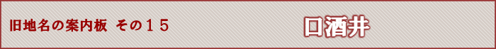 現在伊丹市口酒井といわれる地域は、この絵図が作成された江戸時代には摂津国川辺郡酒井村と称され、そのが口酒井村となったのは明治六年(1873)のことです。同二十二年には口酒井村ほか七か村が合併して神津村が成立し、口酒井はそのなかの大字となりました。昭和二十二年(1947)以降伊丹市に属し、現在に至っています。