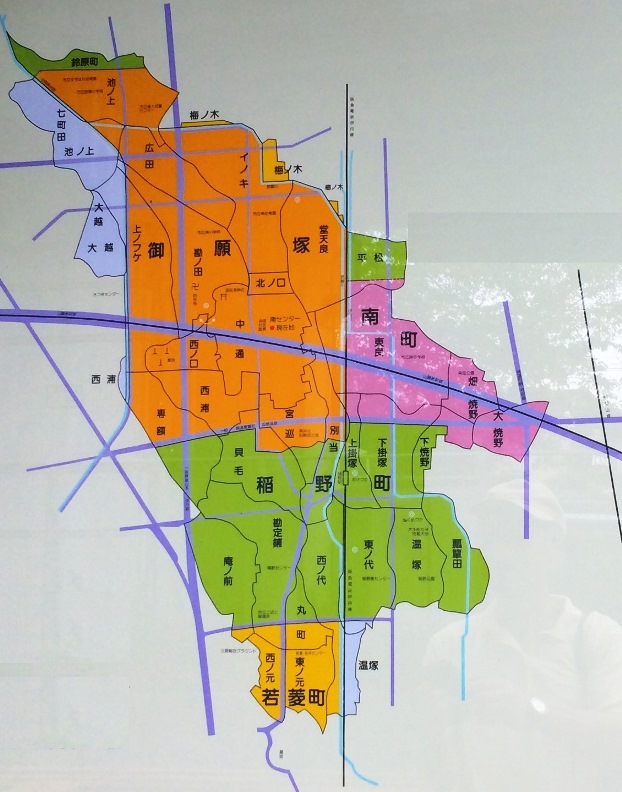 大正14年(1925)の阪急稲野住宅地経営や、昭和12年、稲野村耕地整理組合による約21万7000坪の宅地化などにより、かつての農村の姿はうすれ、緑豊かな住宅地となっています。