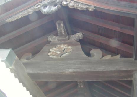 装飾の形が蛙の下半身に似ているので、この様に呼ばれている。 写真は三軒寺の1つ正善寺山門(薬医門)の蟇股です。十七世紀前期の様式を示していると言われている。山門の左右2か所にあり、その裏表で計4枚の彫刻による絵柄が施されている。