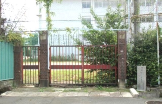 校舎の玄関は北向きで、当時の写真を見ると玄関正面に門があり、門柱はレンガ積みでる。