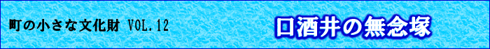 現在のように機械力による大規模な治水整備がされていない昔は、洪水が頻?に発生し、大きな被害を受けることが多かった。口酒井の下流にある田能地区には元文5年(1740年)の大洪水で漂着した犠牲者を弔う立派な宝篋印塔が建立されている。 これらの五輪塔・石仏はおそらく上流から洪水で流されたものが後に掘り起こされ、集められたのだろう。この中に自然石に「無念塚」と彫られたのがある。風化が進んでいないことから、比較的新しい時代に水難者の無念を悼んで設置したものらしい。 |