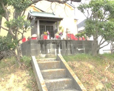 春日神社参道端にある神社の標柱からさらに南側に、神津公園の古堤防の延長部を一部残したような小高い盛土の塚がある。コンクリートブロックで囲った台上に三十数体の五輪塔・石仏等が猪名川の方向、西を向いて立てられている。ほとんどが風化が進んでおり、中には破損したものがある。