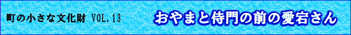 二つの祠に挟まれた石碑は、「門の前の愛宕さん」と呼ばれている。形からすると、元々は村と村の境界地に置かれていた道祖神とも考えられる。