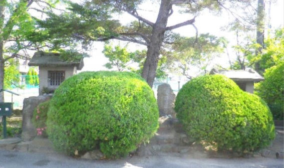 寺本東2丁目9-20の前に昆陽井に沿って細長い緑地があり、木々の間に二つの祠と少し大きな石碑が立っている。