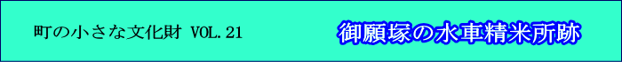 明治40年代以降に蒸気機関が導入されるようになって人力精米は終了した。御願塚の水車精米所は伊丹の数少ない水車精米所の1つである。