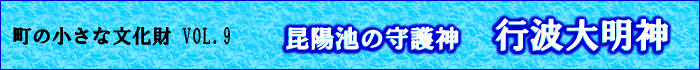 文化三年昆陽池附近絵図をみると、昆陽池の北側に大池守護神行波明神・善女龍王が祀られているのがわかる。 十八世紀後半の昆陽村および周辺村々の明細が記された昆陽組邑鑑(こやぐみむらかがみ)には以下の記述がある。