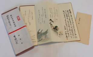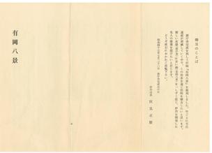 新庁舎完成を祝して折帖『有岡八景』を復刻しました。年ごとに文化遺産が消滅していく中で、この珍本を通じ往時を懐古したいと思います。 新しい皮袋(新庁舎)に古い酒(有岡八景)を一滴(ひとしずく)投じ、伊丹を開発した先人の偉業を偲びたいと存じます。 昭和四十七年七月二十二日 新庁舎完成式の日