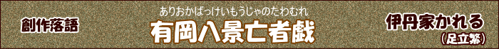 「有岡座」から年末の芝居の出し物を頼まれた、岡田辰市は芝居仲間の山口寅治に知恵を借りる。ふたりは伊丹を舞台にした、荒木村重が題材の劇を話し合う。そこには「今楊貴妃」と伝えられる、荒木村重の妻だしを登場させることも。